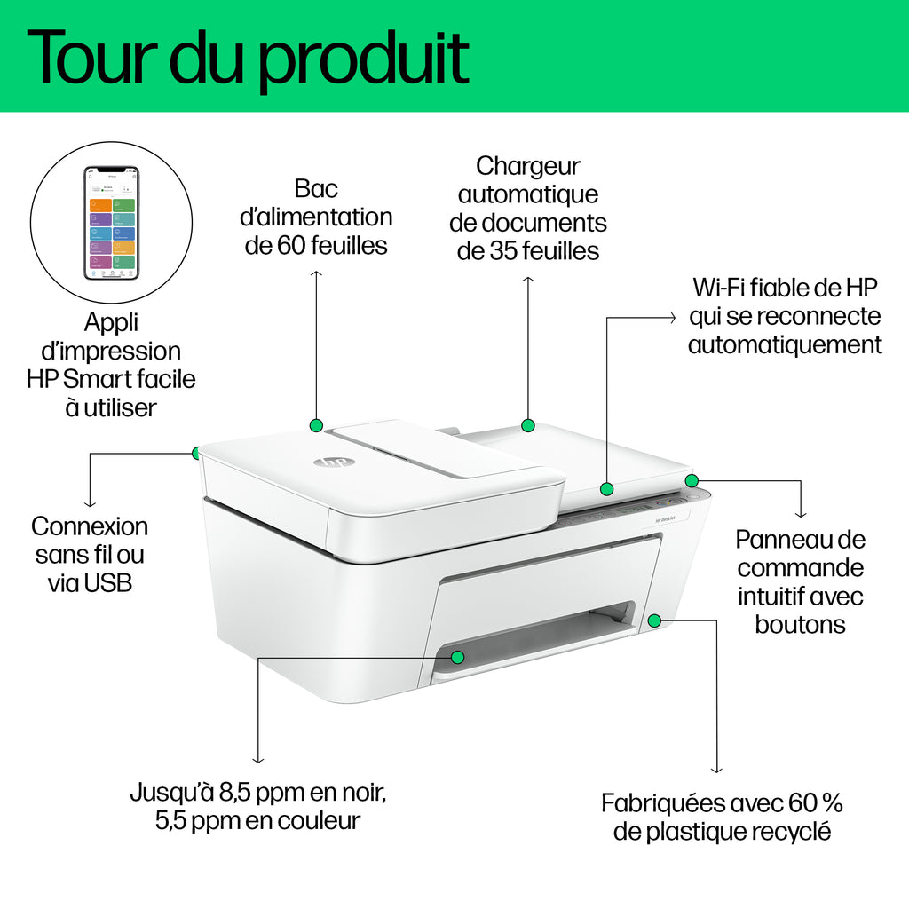 The leader in simple, hassle-free printing. [1] Enjoy seamless printing, scanning, and copying with this compact wireless printer featuring an automatic document feeder and the easiest-to-use printing app. From labels to recipes, simplify your life with the world's leading printer [2,3] . HP Instant Ink compatible.