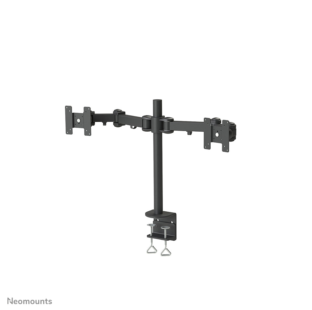 Le support de bureau Neomounts, modèle FPMA-D960D est un support de bureau avec inclinaison, rotation et pivot pour deux écrans plats jusqu à 27". Ce support est un excellent choix pour économiser de l'espace sur le bureau en utilisant une pince.