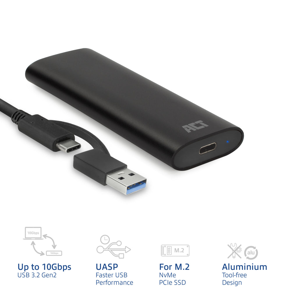 ACT AC1615, Enceinte ssd, M.2, M.2, 10 Gbit/s, Connectivité USB, Noir