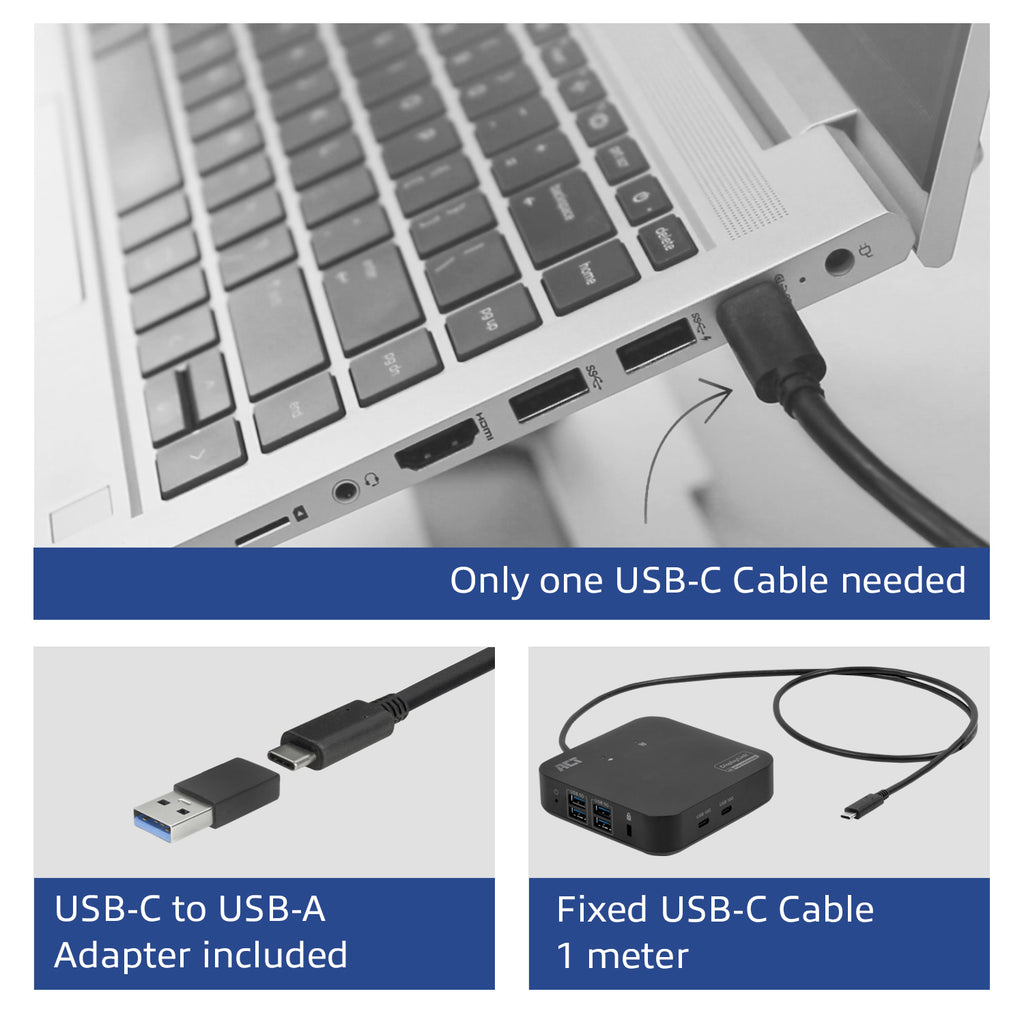 ACT AC7150, Avec fil, USB 3.2 Gen 2 (3.1 Gen 2) Type-C, 85 W, 10,100,1000 Mbit/s, Noir, 4K Ultra HD