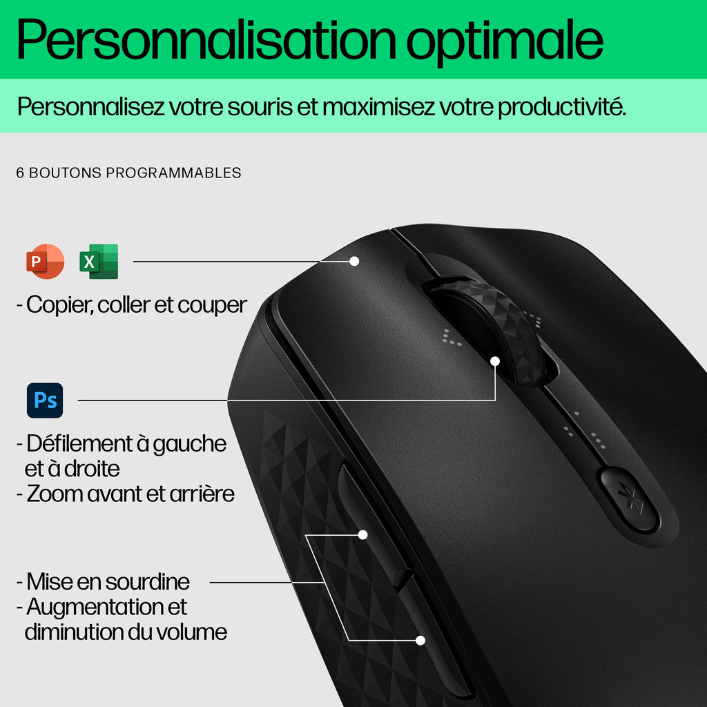 Een draagbare Bluetooth-muis waarmee je overal productief blijft, met naadloze en directe connectiviteit met maximaal drie apparaten. Programmeer tot zes knoppen met applicatiespecifieke functies en aangepaste snelkoppelingen om je werk te vereenvoudigen. De perfecte muis voor al je taken.