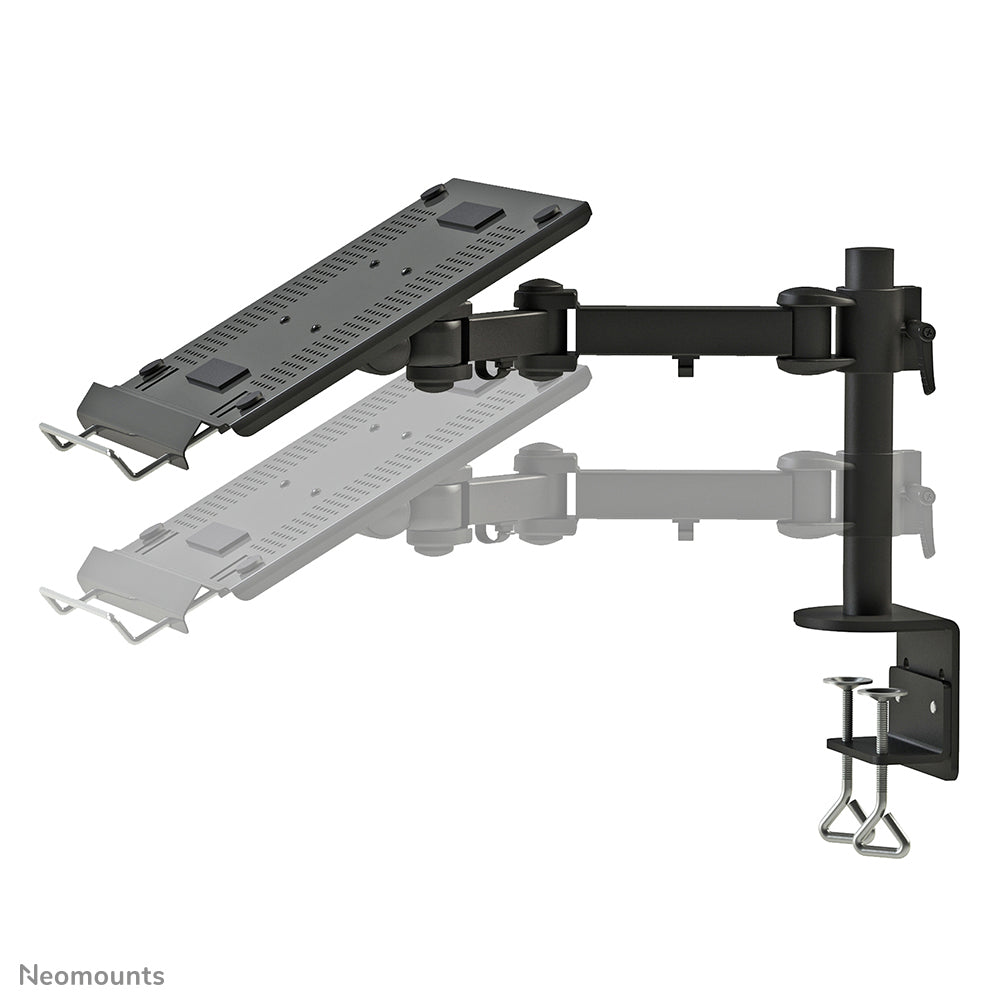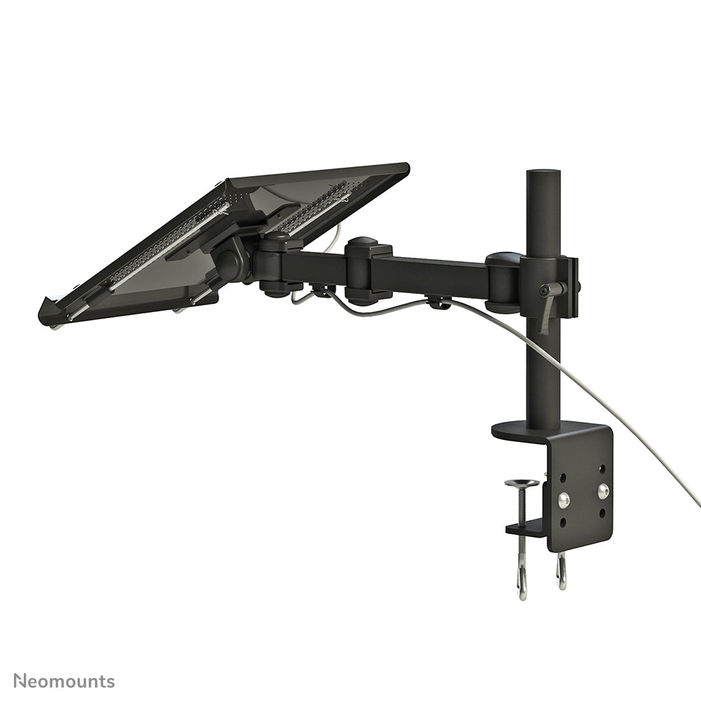 De Neomounts NOTEBOOK-D100 notebook bureaustandaard is een kantel- en draaibare bureaustandaard voor notebooks tot 22". Deze standaard is een uitstekende keuze om bureauruimte te besparen door gebruik te maken van een klem.