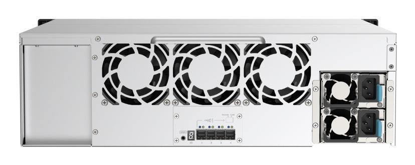 De TL-R1620Sep-RP heeft vier brede SAS SFF-8644 (x4 Lane) SAS 3.0 12 Gbit/s-poorten. U kunt maximaal zestien TL-R1620Sep-RP's in serie schakelen voor een ruwe capaciteit tot 3,4 PB.