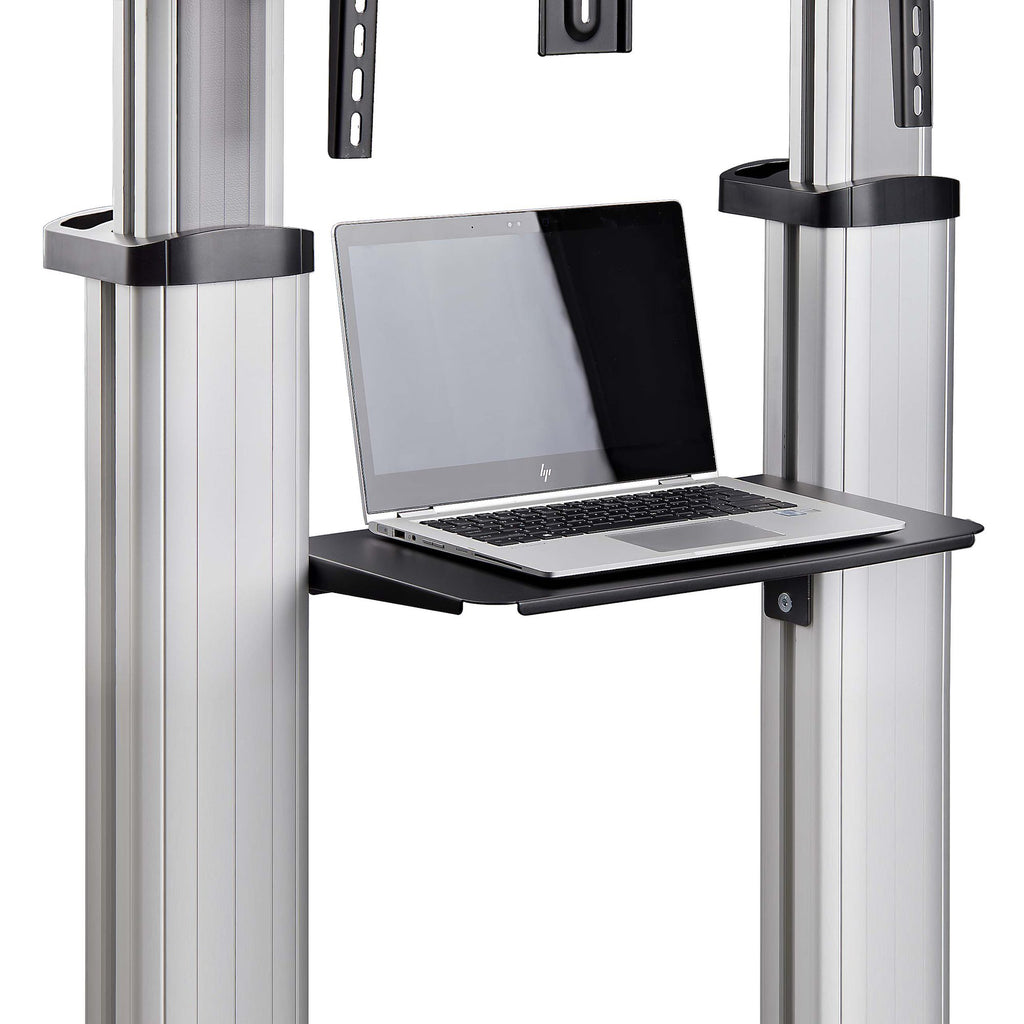 Voor verbeterde draagbaarheid en personalisatie beschikt deze mobiele kar over twee onafhankelijk in hoogte verstelbare multimediaplanken onder het scherm, elk met een draagvermogen tot 5 kg. De webcamplank, bovenaan het scherm, kan tot 2366 mm van de vloer worden geheven.