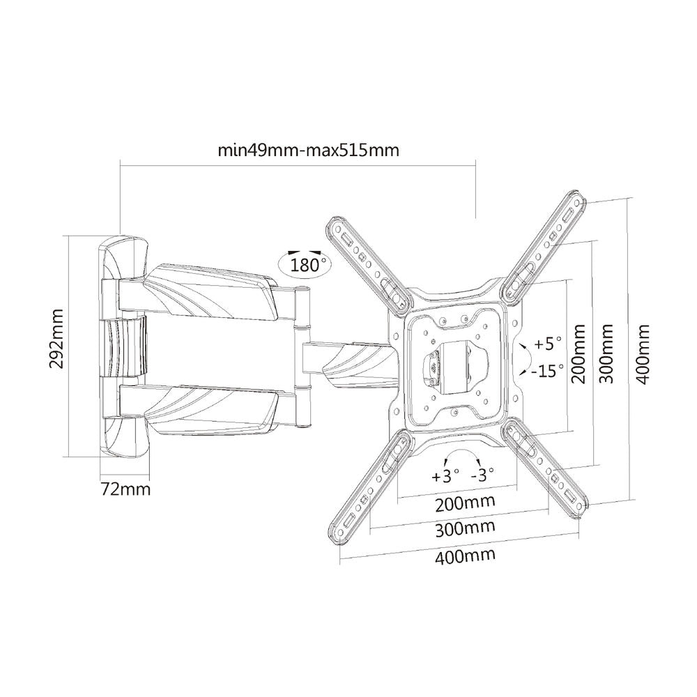 ACT AC8354, 75 x 75 mm, 400 x 400 mm, -10 - 10°, -90 - 90°, Aluminium, Plastique, Acier, Noir