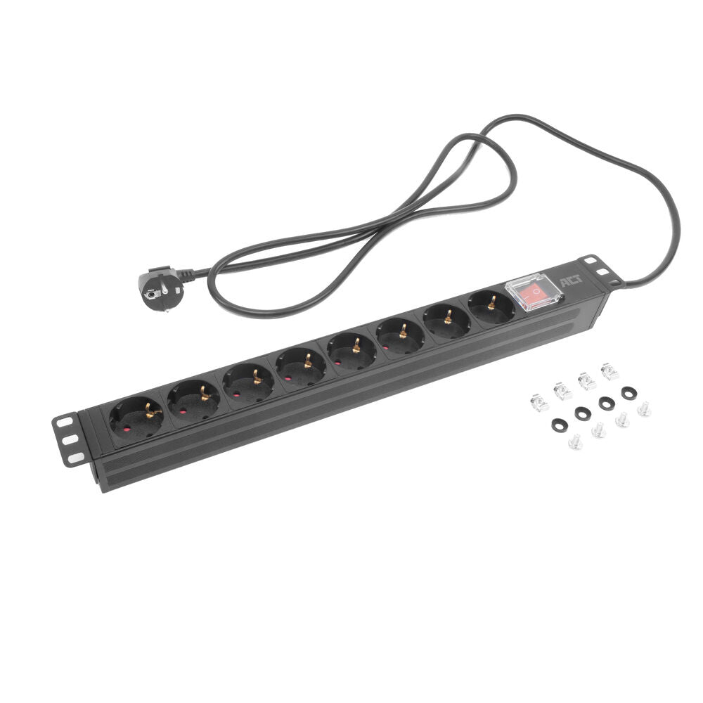La rallonge PDU 19” PD3005 ajoute huit prises de type F avec mise à la terre à votre système de gestion de l'alimentation. La rallonge est conçue pour s'intégrer dans un rack 19” 1U et comprend un câble de 2,5 m H05VV-F 3G1.5 avec connecteur CEE7/7. La PD3005 dispose d'un interrupteur lumineux avec capuchon de protection pour éviter les arrêts accidentels. Les supports de montage peuvent être placés dans diverses positions. Tout le matériel de montage est inclus : écrous cage, vis et rondelles en plastique.