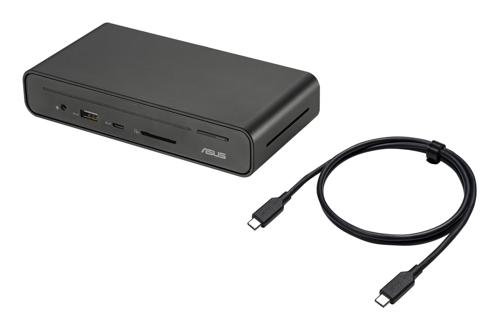 La Station d'accueil ASUS DC301 est un appareil élégant et compact qui simplifie la connectivité des ordinateurs portables. Alimentez votre portable à l'aide d'un seul câble, connectez-le à votre réseau et à vos périphériques, et effectuez plusieurs tâches à la fois avec jusqu'à quatre moniteurs. Il dispose également d'un lecteur de carte SD intégré. En termes simples, la station d'accueil USB-C à triple écran Duo DC301 Duo d'ASUS garde votre bureau propre, bien rangé et organisé tout en vous préparant pour le travail en un clin d'œil.