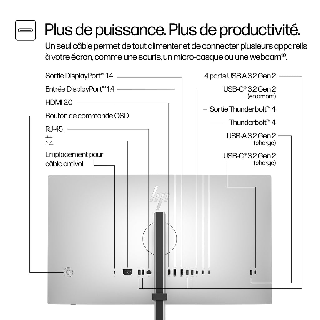 Sublimez vos créations avec des détails réalistes. L'écran HP 4K 27 pouces Thunderbolt 4 vous soutient pour exprimer toute la subtilité de vos idées avec une vaste palette de couleurs éclatantes. Comptez sur les performances robustes de cet écran pour gérer tous vos projets simultanément.