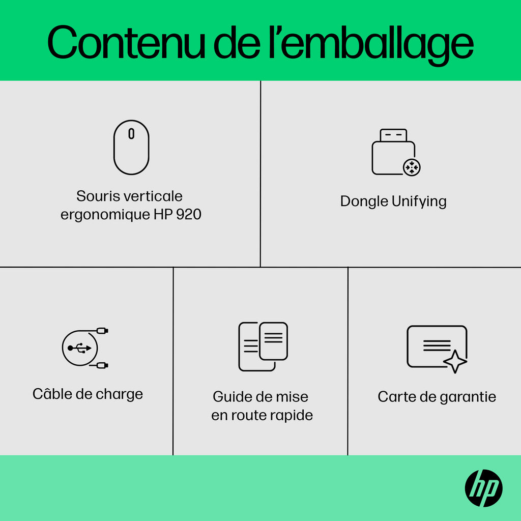 Au travail, le confort est essentiel tout au long de la journée. La souris verticale ergonomique HP vous accompagne au quotidien : sa forme s'adapte parfaitement à la position naturelle de votre main au fil des clics, des défilements et des glisser-déposer. Travail, retouche photo ou gestion du quotidien : cette souris offre un confort inégalé grâce à son repose-poignet amovible.