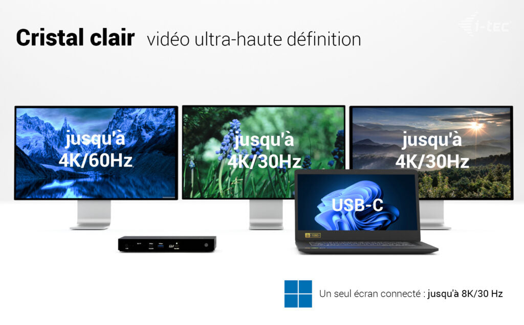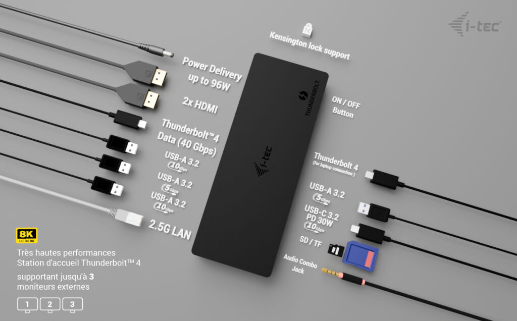 Performances ultra-élevées, transfert de données ultra-rapide et prise en charge de résolutions allant jusqu'à 8K/60 Hz. L'une des stations d'accueil i-tec les plus puissantes du marché !