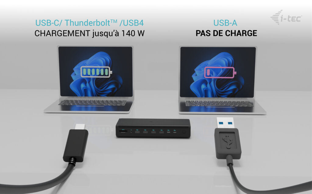 ** Si votre ordinateur portable ou votre tablette prend en charge le nouveau protocole de charge moderne USB-C Power Delivery PD 3.1, la station d'accueil offrira une puissance de charge allant jusqu'à 140 W (si vous avez PD 3.0, la puissance de charge sera de 100 W).