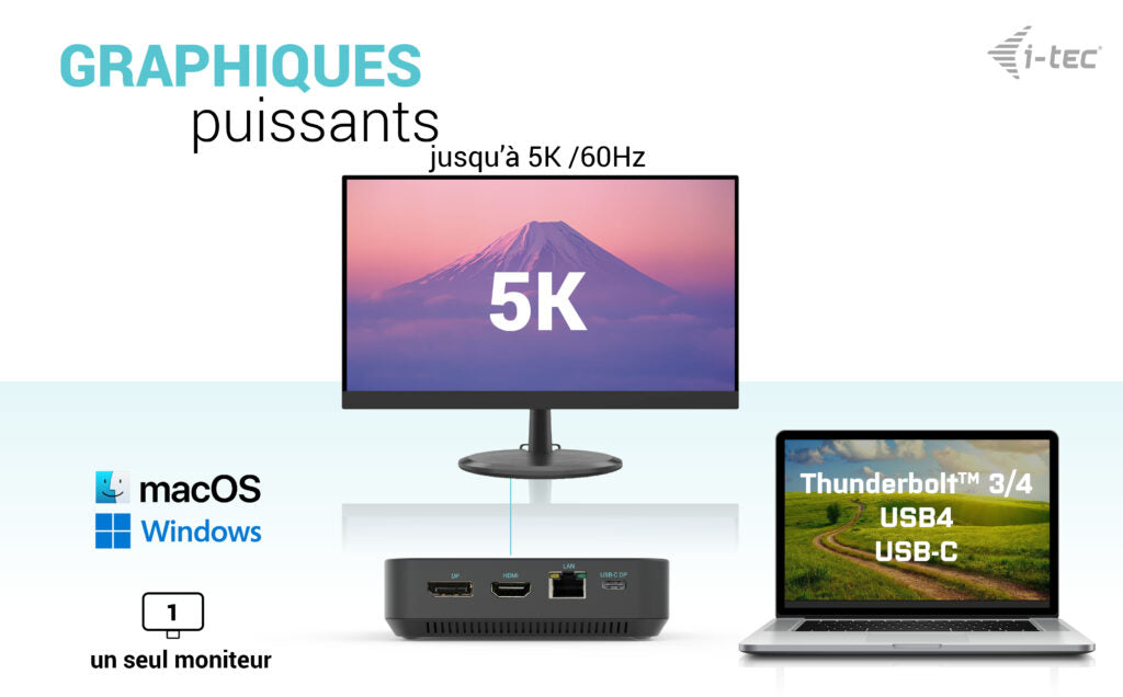 - Connectez jusqu'à trois moniteurs externes 4K/30Hz