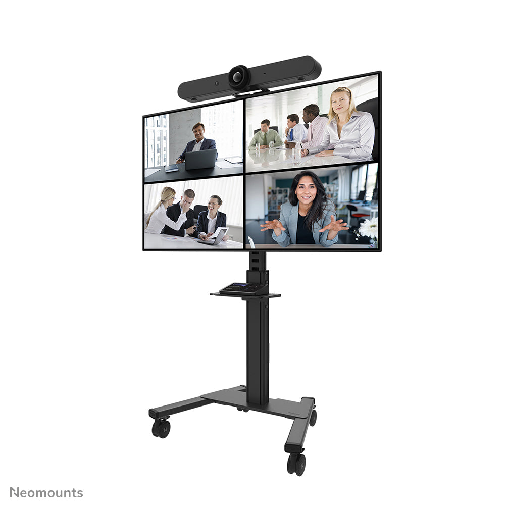 Le kit Neomounts AFLS-825BL1 est un kit vidéobar et multimédia en option pour le chariot mobile FL50S-825BL1. Le kit permet l'installation d'une étagère pour une caméra et d'une étagère pour appareils multimédia séparées sur le chariot. L'étagère à caméra universelle peut être installée au-dessus et au-dessous de l'écran et est réglable en hauteur, pour s'adapter à l'écran. En outre, l'étagère pour caméra peut être montée à l'avant et à l'arrière du support. Le kit comprend un adaptateur pour les Logitech Rally Bar et Rally Bar Mini (tous deux pouvant être placés au-dessus et au-dessous de l'écran). En outre, l'étagère multimédia universelle permet d'installer, entre autres, le Logitech Tap