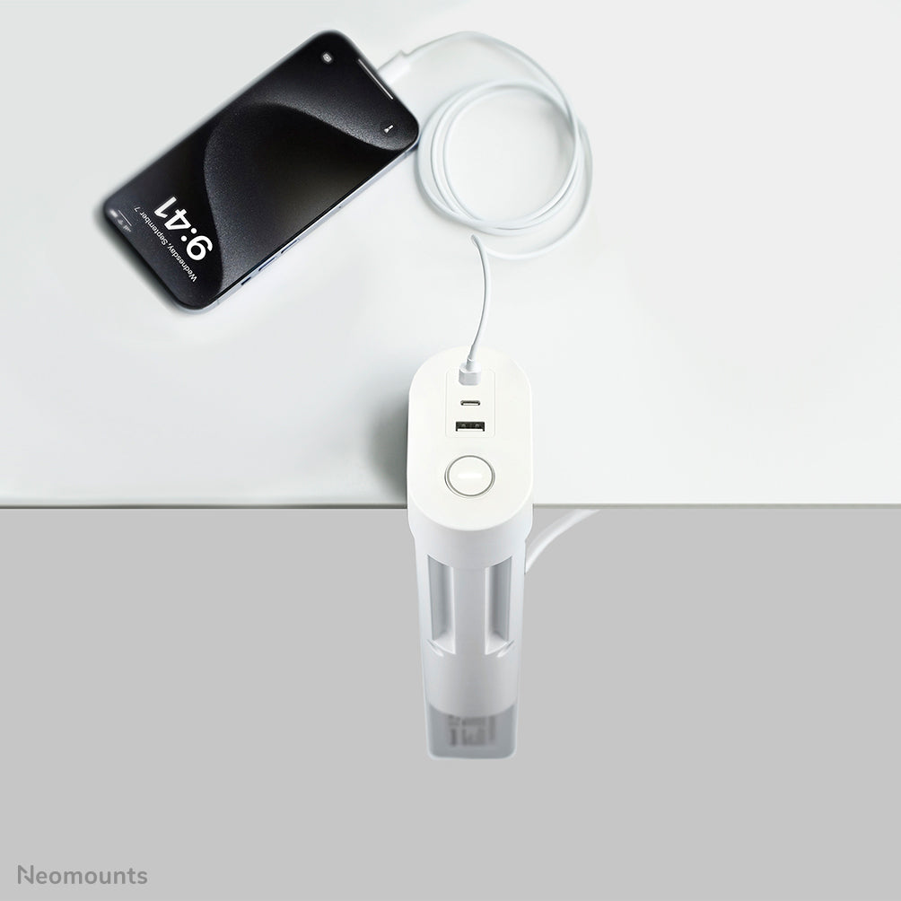 Neomounts DS22-840WH6 Multiprise de bureau avec pince et ports USB-C et USB-A - charge rapide