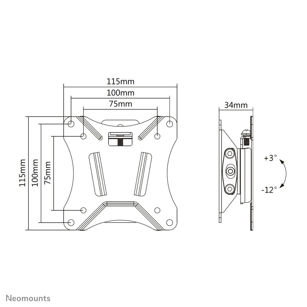 Avec une profondeur de seulement 3,4 cm, le NM-W60BLACK conserve un aspect propre et moderne tout en supportant en toute sécurité les écrans conformes au modèle de trous VESA de 75x75 à 100x100 mm.
