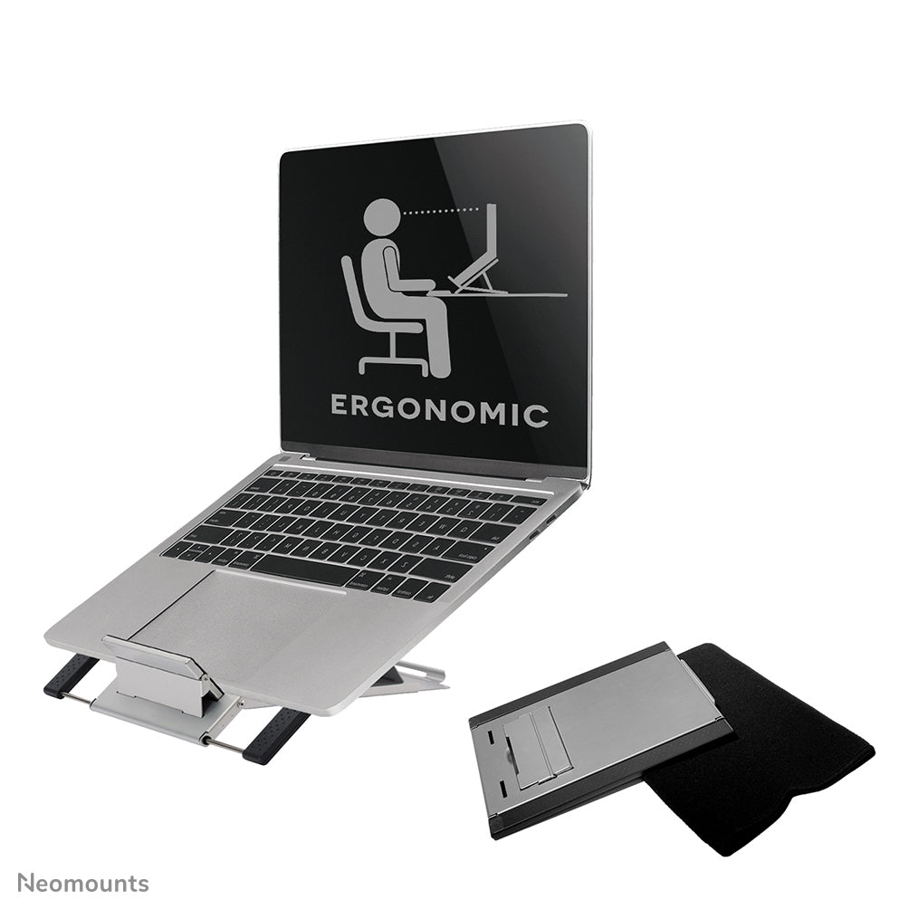 Il offre six positions d'inclinaisons différentes pour un maximum de confort. Largeur réglable pour s'adapter à la plupart des ordinateurs portables et des tablettes. La conception évidée unique évite les problèmes de surchauffe pour tablette et ordinateur portable à vitesse maximale. Le support NS-LS100 est l'outil idéal pour les voyages. Compact, léger et facile à transporter.