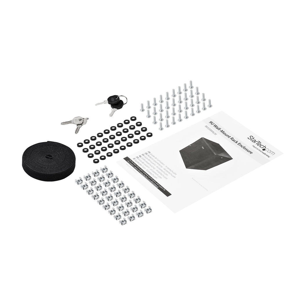 Le rack réseau à montage mural simplifie l'installation de votre équipement grâce aux écrous cage et aux vis de montage inclus. Le rack inclut tout le matériel nécessaire pour monter votre équipement, ce qui vous permet de gagner du temps et d'éviter tout problème lié au matériel de montage. L'armoire réseau 9U dispose d'une porte avant amovible et réversible et de panneaux latéraux amovibles, chacun avec des mécanismes de verrouillage rapide, de sorte que vous puissiez facilement accéder à votre équipement. De plus, les portes et les panneaux du rack sont équipés d'un verrouillage indépendant pour la sécurité de votre équipement.