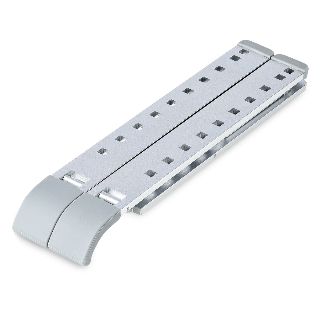 Le support ergonomique pour ordinateur portable comporte 9 réglages d'angle différents (15° / 27° / 37° / 45° / 52° / 60° / 67° / 75° / 84°) pour aider à trouver l'angle de vision le plus confortable. La lèvre surélevée à l'avant et les patins en caoutchouc antidérapants empêchent l'ordinateur portable de se déplacer lors des réglages et pendant le fonctionnement. En outre, les coussinets protègent l'appareil monté des dommages esthétiques.