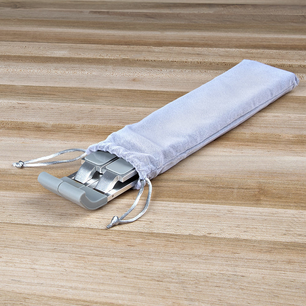 Le support pliable ultra-léger (329g) est idéal pour les utilisateurs qui ont besoin d'un support portable et pouvant être déployé rapidement. Transportez le support entièrement replié dans la pochette de rangement incluse. La largeur de ce support pour ordinateur portable est réglable, de 51 à 18,2 cm, ce qui garantit la compatibilité avec plusieurs appareils. Une fois le support plié, ses dimensions sont de 24,1 x 5,1 x 2,4cm.