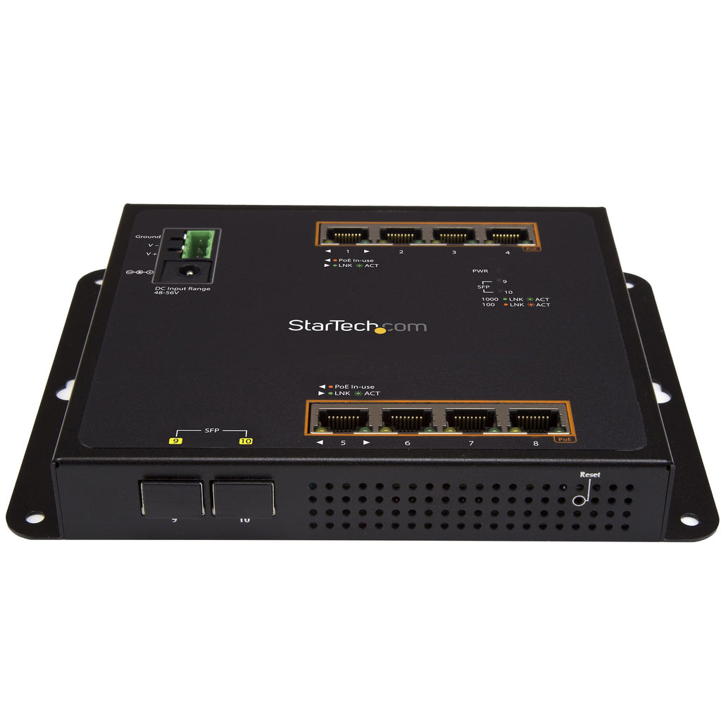 StarTech.com Switch Industriel POE+ Gigabit Ethernet 8 ports - 2 connexions MSA SFP - 30W - Switch Gbe Haute Puissance L2 adminstrable renforcé - Fixation murale Rail DIN IP-30/ -40C° à 75C°