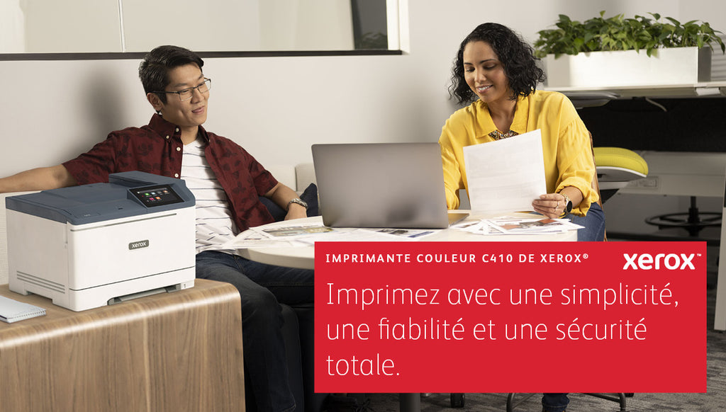 Simplicité, fiabilité, sécurité. Prêts à faciliter les tâches compliquées ? Retrouvez tout ce dont vous avez besoin, sans superflu, dans l'imprimante couleur C410 de Xerox© : fonctionnalité dans un format compact, rapidité d'impression, rendu couleur de qualité et option Wi-Fi. Installation rapide. Idéale pour les équipes de travail petites et moyennes qui ont besoin d'une imprimante fiable, la C410 est directement prête à l'emploi. L'Apps Easy Assist de Xerox© vous guide pendant l'installation du Wi-Fi depuis votre smartphone. Ainsi, vous pouvez vous mettre au travail et lancer vos impressions en quelques minutes, avec un minimum d'assistance informatique.